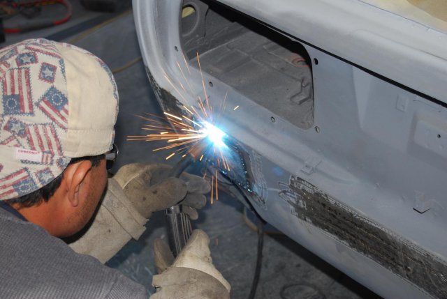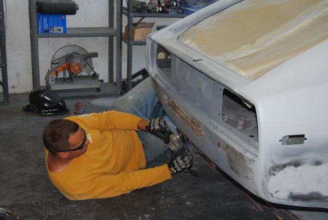 Saturday saw more progress with the car, I made a deal with my body guy to come work on the rear end 'shaving' project to help mitigate the costs. We got it done in about 5 hours, not too bad. Had to cut out precision metal pieces for the bumper recesses, as not to mess with the structural integrity of the design. We also cut out the bumper brackets, and to reinforce, added some cold round steel along the inside edge and reinforced with flat bar. I don't think it will interfere with the fuel tank, but it's been a while, so I have yet to see. If it does, should be a minor modification. I am also coming close to needing to decide on the color, and this is what I have so far. It's GM Sunburst Orange. I've seen several custom cars with it, as well as new production Chevy's. At first I thought it had too much red, but it has grown on me. Tell me what you guys think. -