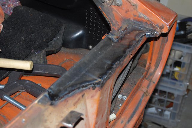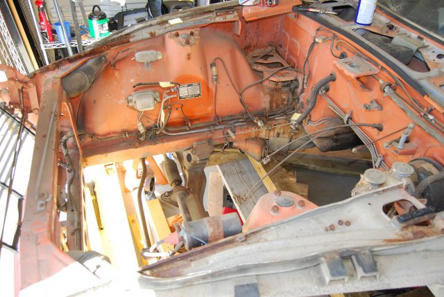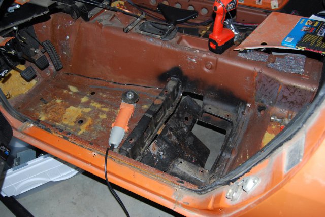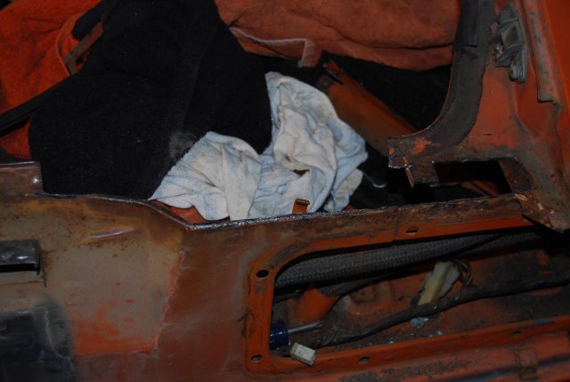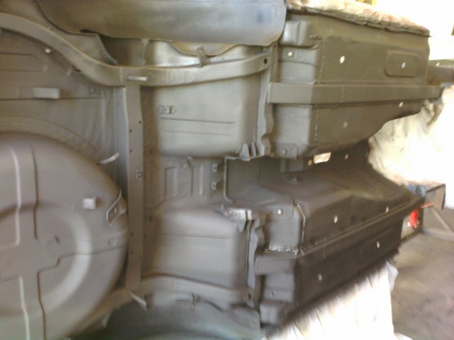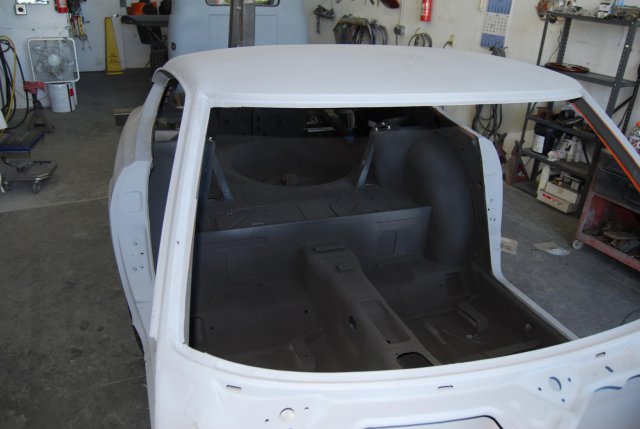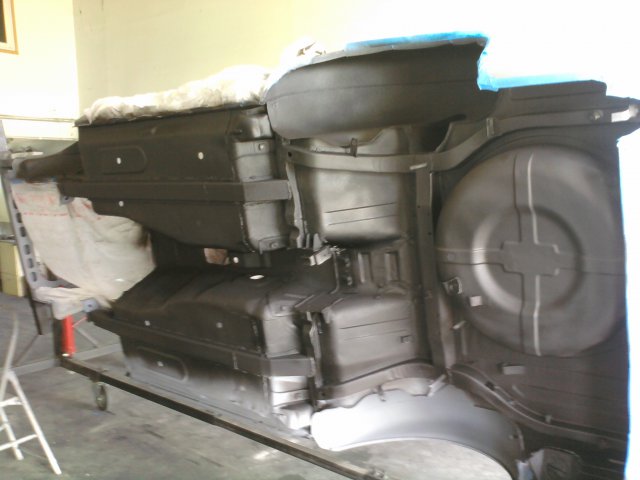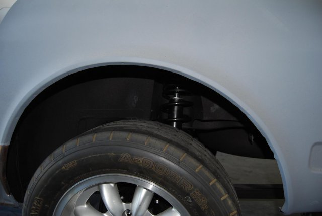 Goth - I really like the look too. It's tempting to leave it bare. I found that to spray it on, I had to dial down the gun (the one they sell) to get it to come out as any kind of spray. The ceramic insulation seemed to spray on a lot better. I didn't even try to mess with brushing it on, it seems that it would not be very forgiving and you would end up with a bunch of messy brush strokes. Turbo- Those are speaker cups that my dad fabricated and put in back in the day, but never used them. I left them in, because I'm planning on using them for my sound system. They seem to fit perfectly in that dead space between the fender and the body. -