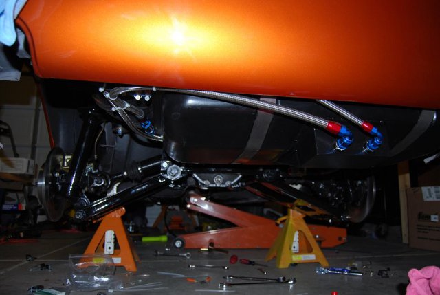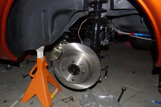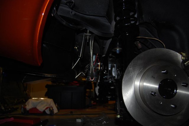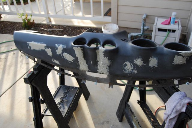 Well, it's been a while since I last posted. Been pretty busy with the Z and otherwise, just haven't had time to get pictures up. Most of the things I've been doing lately on the car are minor, non-visible necessities. However, I have gotten the fuel tank mounted, almost all of the fuel lines built and routed, and I also sprung for the Toyota 4x4 non-vented front calipers and 240sx Modern Motorsports rear disc brake conversion. Extremely easy conversion to do. I've also begun refinishing the dash, repairing it with foam sealant and SEM bumper repair as prescribed in the dash repair threads that are abundant in the Z community. So far so good, but one thing I didn't think about... the bumper repair sands well but takes a while... I shouldn't have globbed it on like I did! Should turn out well though when I'm done with the hours of sanding. -