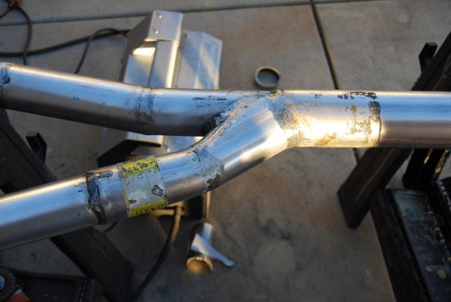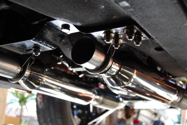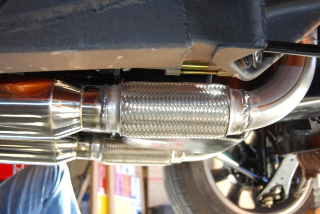Yet another update... after two days of working hard, and with the help of a knowledgeable friend, we built the exhaust almost to completion. It is fully custom, with just a few pre-bent angles, 2.5" to 3". I waited to order the muffler because I wasn't sure what I would be working with, but I picked it out, and it should be here soon. In case you are keeping track, I will not be using the SuperTrapp, partially because it was going to be a difficult fit, and partially because it's 2.5". I put two vibrant resonators right after the flex joint, then joined the pipes after the transmission. The Y is a creation that we came up with, it's a 2.5" pipe that is flared out to 3", where the two meet, and then 3" from there on. All welding was done with my crappy generic MIG welder. More pictures later today of the rest. -
