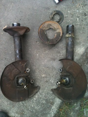 You asked for updates and you shall have, Ive been more active On ratsun actually, diddnt think anyone was following this thread anymore. so after many days of procrastinating the turbo if finally back together. I talked to some of the guys at GPOP about the cracked turbine housing and they said its not a big deal. yes, I am stubborn. haha correct me if im wrong, i dont remember the parts off the top of my head so this is everything in pieces the center section has two bushings and four snap rings, those all get replaced the back of the compressor, the center springy thing for the thrust washer and the bearing get replaced the new thrust bearing now you can start putting everything back together the turbine housing and compressor wheel back on the compressor housing back on, be sure to clock the housing, otherwise youll have clearance issues and fitment problems reinstall the wastegate actuator and voilla! dones. now you have a nice rebuilt turbo for a fraction of the cost of a new one, sure its not pretty but it works. Prices: Garrett Airesearch T3 turbo $60 from HybridZ G POP shop complete rebuild kit about $110 shipped personal satisfaction of mending something, 4 tquitos and a slerpee now all I need is Turbo fuel pump, turbo oil pump and the oh soo confusing megasquirt I finally got around to replacing my heater core on my car after it decided to try and recreate the great lakes on my floor. This was a really fun job, riping the dash out and swapping it out took most of the day but now its done. I just need to replace the heater control valve because the old one was leaking to, its bypassed for now. And now some goodies. I got a set of ground control sleeves and springs for the front struts (out of my old 210). So now theyre almost ready to drop in. Hopefully I can get them welded in.