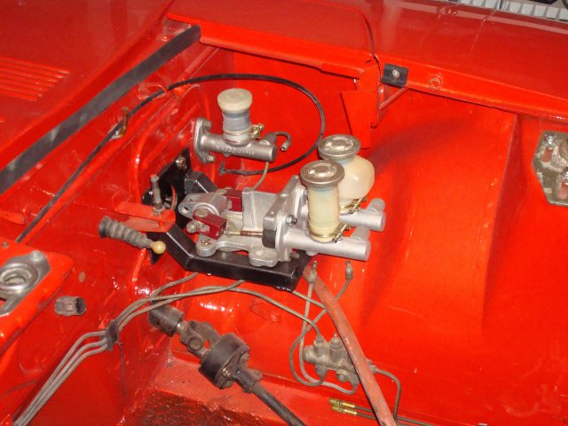 sorry for the late delay zmanco this unit is actually a older tilton dual master cyclinder that I had on some old aluminum lockheed reservoirs, i replaced the older lockheeds for a newer style type of reservoir and i had to do some custom fabrication to make the bracket fit for my 240z application, here are some closeup photos before and after.