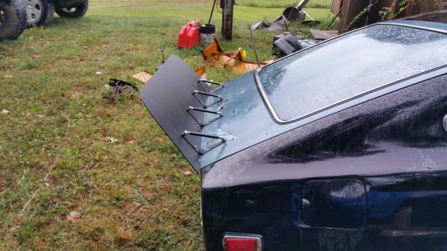 Having a little trouble with pictures, but I built this neat little....big...spoiler the other day. I'll eventually make some billet hinges for it, and some not-cheap adjusting rods, but I dig the look of it. Before you say anything keep in mind that a) it isn't finished. I know it's way too big to be practical in the production of downforce vs drag. C) I like it, so I'm not really bothered by anyone's negatime opinion, so don't bother with one. But. If anyone has any legitimate insight into the effectiveness of said part, I would love to hear some. I've buzzed over the wind tunnel analysis thread a few times, but I've only read about bre style spoilers. Haven't seen any articles on smaller adjustable/fabricated spoilers, but I haven't looked particularly hard either. If it will look cool and kill some rear end lift I can live with a little drag. Once the car is built I'll be primarily using it as a daily/mountain basher, so I doubt a little drag will bother a 650+whp 2800lb car at slightly higher than highway speeds. Bottom line, I like it. But hey, if somebody wants a smaller one, or one with a different shape, or standoffs for a big wang, hit me up. I drew and cut this one by hand, but can easily draw things on bobcad and waterjet or plasma cut them.