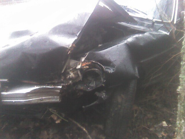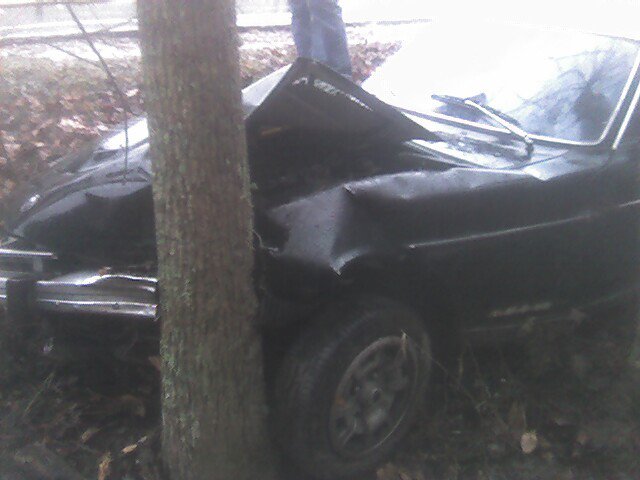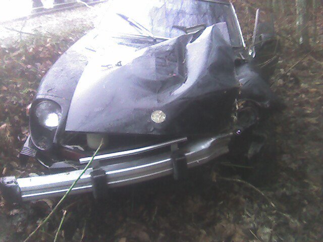 this was a buddys car...its a 78 280z original 5 speed # matching 1 owner car....he was coming around a turn while it was wet and dropped a cigarette in his lap and looked down for 3 seconds or so then looked up and seen his car about to go off the road naturally he jerks the other way then went off a 4 foot ditch(it had the front smashed up just like a dukes of hassard jump) then abruptly slammed into a tree....here's the aftermath