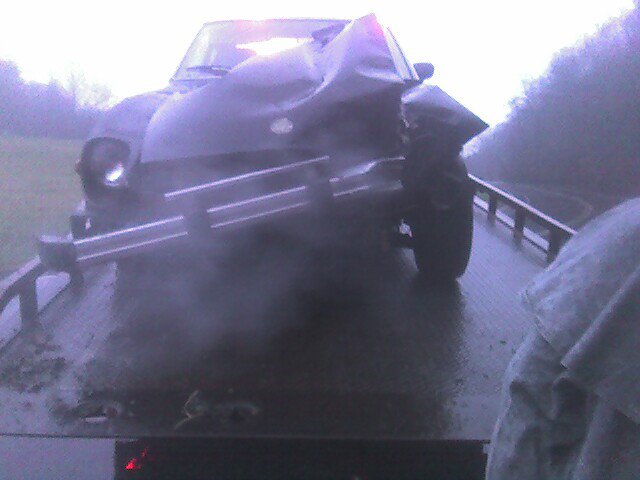 oh he's beat up but ok....oh and i forgot to mention he cracked the windshield with his head b/c of not wearing a seatbelt...and he said he was doing anywhere from 60-70 mph......just imagine that wreck if he had taken those big bumpers off...it would have been ten times worse.... -