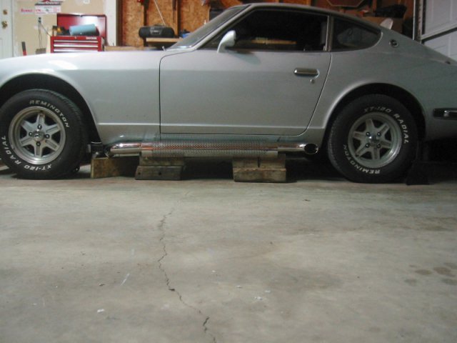 Update after last night: Well, the pipes are now securing fastened to the car. However, the more I look at my setup, and the more I look at “Coze Z Cole’s” setup, the more I think I need a flex piece between the pipe and header. Gonna try to shop around today and see if anybody locally (Detroit area) has a 2.5” flex piece. If not, I’m sure Summit sells them. As for the mounting, I basically took half of the Dynomax brackets and threw them in the garbage. I wound up keeping the rounded section of the clamps and used those to connect the heat shield to the muffler section. I had to cut off the threaded section of the clamp so just the raw rounded metal section of the U-shaped clamp was left. First, I welded one of these pieces to each end of the muffler pipe. Next, I took the heat shield and placed it over the muffler section with the U-clamps provided a good ½ inch spacing between the two. I started welding one edge of the heat shield to the U-clamp on both ends of the pipe. Then, I had a fairly burly friend squeeze the heat shield and hold it in place against the other end of the U-clamp as I welded it in place. With the muffler section and heat shield now permanently connected as one, I took to hanging the pipe from the car. I drilled holes for the front and rear hangers and installed the Dynomax supplied hangers and rubber isolators. Instead of the cheap shiiit metal screws, I used thru bolts and fender washers. After all, these Datsun floor boards aren’t known for the superior thickness. Anyway, I then held the pipes in place then welded the hanging section of the bracket to the side of the pipe. Overall, it came out a lot better than I had originally expected. It is impossible to see any of the mounting hardware from outside the car. There is maybe a 1/4 inch gap between the top of the heat shield and the rocker panel. Even go, the gap is outwards and not hanging down. While I would have still preferred to hang the pipes along the rocker panels, it just wasn’t going to happen with what I had. I’m pretty happy with what I came with instead. I would have tried to finish more last night, but it was already 11:30 PM by the time I made it this far, and the Wings just tied it up in the second period. Still need to finish up the two bends coming off the header and insert a flex piece. Once that is done, she should be ready to fire. I’ll hopefully be able to post up pictures and a video clip when it’s all done. -