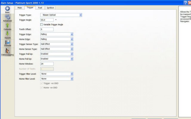 ^ agreed. Or change the Trigger setup from Falling edge to Rising edge. That should correct for the change in Rotation direction. Then again the AEM 24 +1 trigger wheel works great as well. And it should be configured as a 24 Plus 1 ring... not a 24 minus 1 ring.... as per Haltech Software and Firmware revisions for Nissan RB enigines.