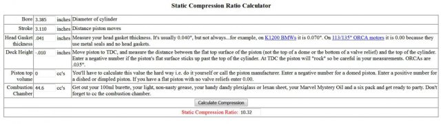 I've noted that the OZDDAT calculator comes up with figures that are different from other established sources, including Hybrid Z. EG: I punched in an L28 with Flat-Tops, stock N47 head and stock L28 head gasket. Calculator came up with a 9.7 CR. However, most other sites all report that combo as being over 10 to 1 CR. Usually in the mid 10's. That's quite a difference.