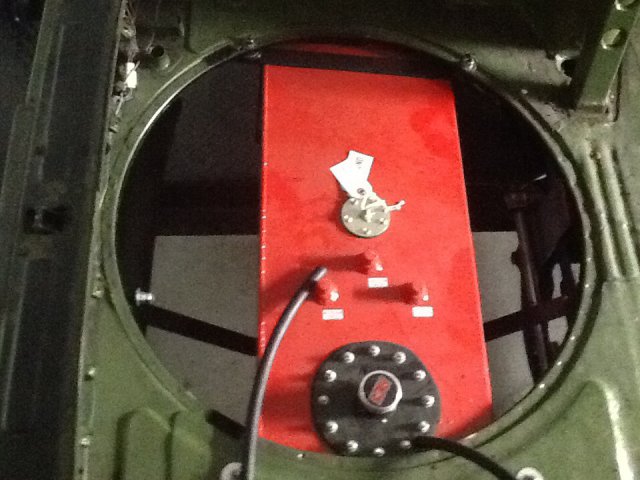 My son and I cut out the spare tire well and mounted a 15 gallon fuel cell underneath: We want to mount the pump right alongside the cell underneath. Anyone have pictures of a similar set up? Or thread suggestions? We'll be using the same filler location as factory via a new filler neck, etc.; welding a new cover over hole with a chase for filler neck. Any suggestions on fuel pump for turbo engine? Basic reliable pump sufficient for the system? Also, was planning on going with Fatts Rollover tubing schematic you find on Ratsuns http://www.pirate4x4.com/forum/general-4x4-discussion/243815-fats-fuel-air-trap-system.html#post2712471 and abandoning / removing canister from above and all the factory hose routings. Any thoughts? New filler neck comes with breather, and with rollover system planned, what other item should I be concerned with? I have new 3/8 feed and return rigid tubing plumbed through tunnel...