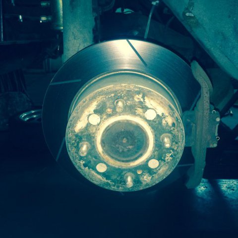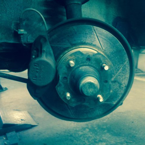 My 240Z came with a lot of work done to it, a lot of 280 parts and a few Mustang parts (ew!) Bled the brakes and rotated the tires today, took some pictures while I did. Interested to see if anyone can shed some light on to what setup I have, specifically so I know what pads to get down the road. I believe that I have stock front calipers, a later model rear disc conversion, with some sort of aftermarket slotted rotors (Wilwood? There is also a Wilwood proportioning valve in the car). Thanks!