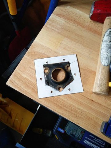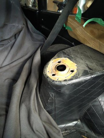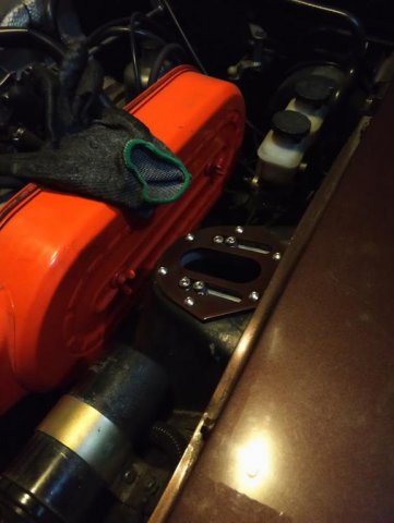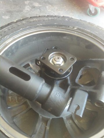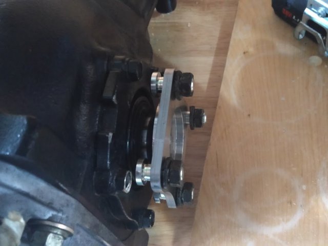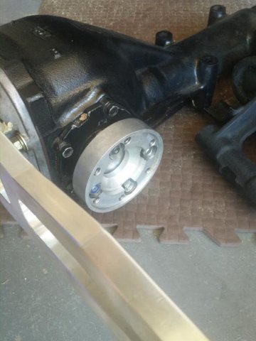 Ok- so I am staying true to my promise to myself that I would keep documenting this as I progress. So installed the CV adapters for the wolfcreek racing CV kit. Borrowed some Blue Lock tight from work and buttoned these up. New hardware and it matches nicely with the t3 m mustache bar. Finished cutting the strut towers and lining up the Sakura Garage camber plates. It is a bit of a pain cutting them with the hatch still on ( realitive to cutting the front towers) Forgot to get a picture of it all finished and painted but will put up another shot. Installed the CV adaptors to the companion flange on the out side assembly. Found this was really easy to do by fliping a wheel on its face and mounting it. When torquing, I was able to just hold the tire in between my feet to add a bit of stability. They really are a pretty little piece. Next up.....RT diff mount install, t3 e-brake cable, t3 droup mounts, and dog bone, diff, ect.
