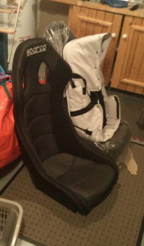 So on the way home from C&C car starts making an awful grind scrape noise going over bumps. Get the car back to the shop.....Find that all the chasing my friends 88 911 through the country roads ( and maybe a few bumps) has resulted in a broken DS rear coil spring. I had been researching the shit out of the coil over options at the time ( on here and other sites- the thread is still open), and this was the excuse that allowed me to pull the trigger. I ended up ordering the set up from Sakura Garage. They make their own camber plate, and pair it with a set of Stance Coilovers. Awesome quality and first rate customer support from Sakura Garage. So this is when things slow down on progress, and I basically start part collecting. Wheels are ordered (amazing group buy that I couldn't pass up) And was able to get a set of Work Meister CR01's in grey face with polished bronze lip. Thanks again Peter at NEXTMOD in Markham ON. Found a set of Z force productions BAMFZG flares on DPAN on facebook. I have yet to install....Might still call jpngarage and get their set. They just look to be more finished? could be off here. Would love input. Started hunting seats as well. Got a deal on these Chronosport fixed back seats as they were in stock at a supplier, and from my understanding Sparco is not making this seat any more. Narrow enough to fit the car but wide enough for my ass.