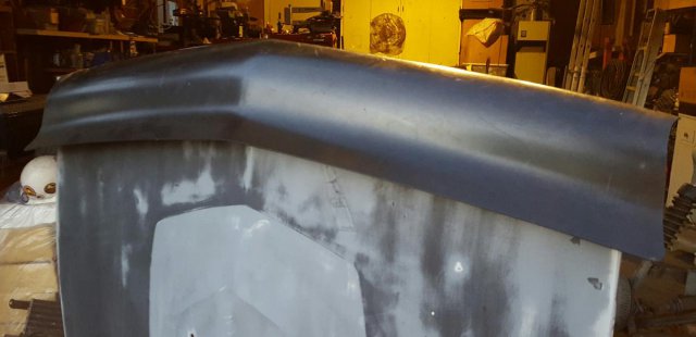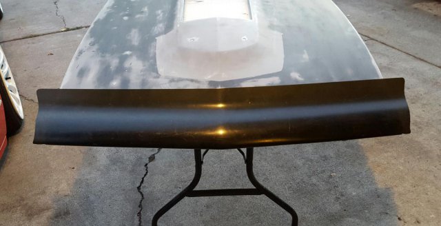 The bent under part that attaches to the hood is spot on the width and shape of the hood. Then widens once it comes over the top.