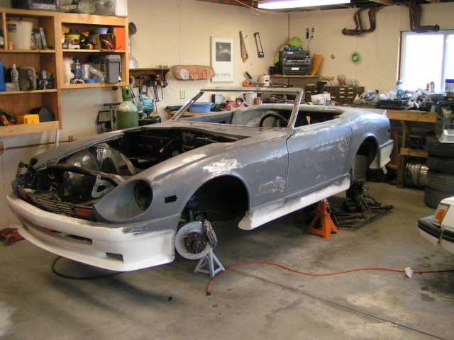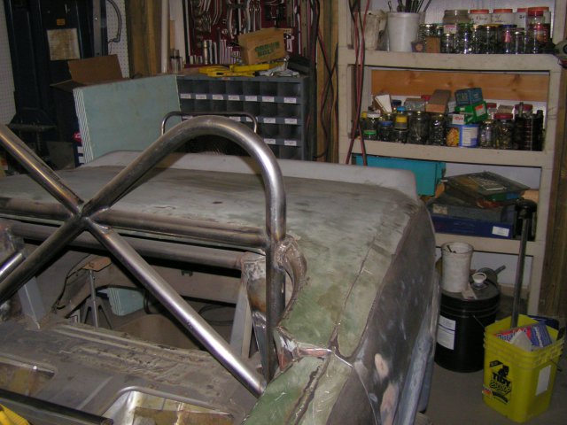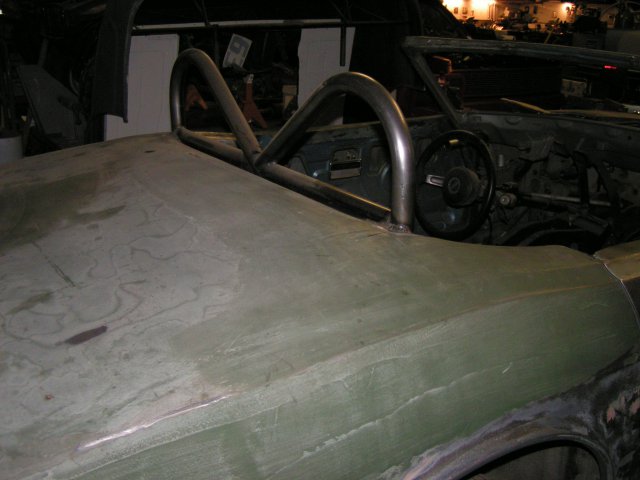 Sorry no pix of the early part but I can show you in detail where to cut yours and if you are feeling rather lucky some where I saw one with a working trunk , I have some ideas of how to do this . And yes I will be doing something about the frame but at a cost of interior look . My solution is to build a roll cage tha basically connects the 4 strut towers together as one big box (a removable strut bar connects the front) with an x brace running thru the doors from front to back. In my new pix you can see how the wind sheild was cut .The new one is chopped down a further 4 " Learned how to do that after the glass guy succeeded at cutting the glass. had to section the wind sheild frame by cutting the frame in 3 places and welding in a piece from a donor car which I might add got some good looks as two white guys cut a 6" x 20 " strip out of the wind shield frame of the donor car at the junk yard again with the now infamous sawz em all. I figure any way why not it has z right in the name......