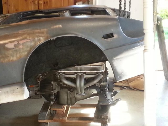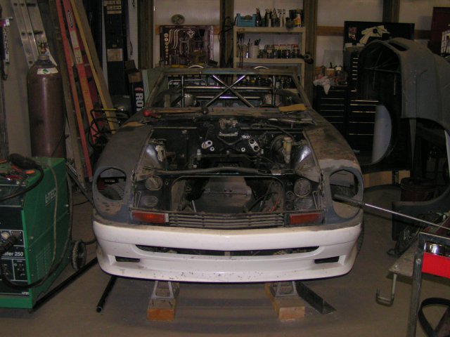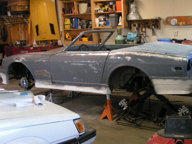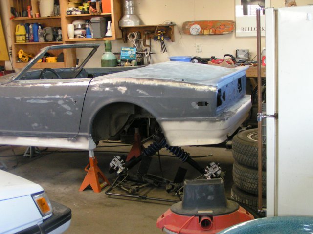 A little history ,this car started out as an almost finshed project . Curse the inventor of affordable sawzalls and cheap beer . ( not a good combo ) Let me add that at the time I had zero auto body exp. This is what I learned , The rear hatch has basically the right curve to match the body lines from the strut towers back . This is where I learned my first true auto body term (other than bondo) sectioning .I " sectioned " the rear hatch to fit from about an inch forward of the strut bolts. The radiused areas are actually 2" emt pipe I over laid that with sheet metal which I used hammers and dollies to shape the edges. ( more I learned ) .Another unfortunate thing I did learn also was a term welding sequence. Then I got to learn about metal shrinking ,and how to do it So any how or more like some how I got it to this point . Right now I am working to finish the brakes and suspension , and am clearing out the engine bay for my 350tpi motor . The suspension is all msa the brakes came via ebay (the backs fit purfecto the front require some reworking of the spacers.