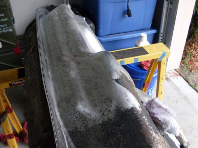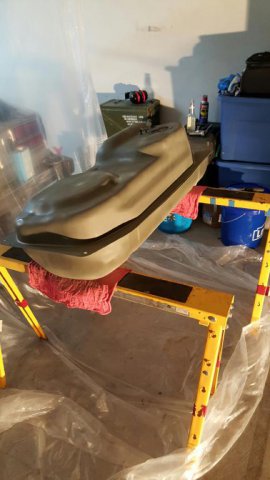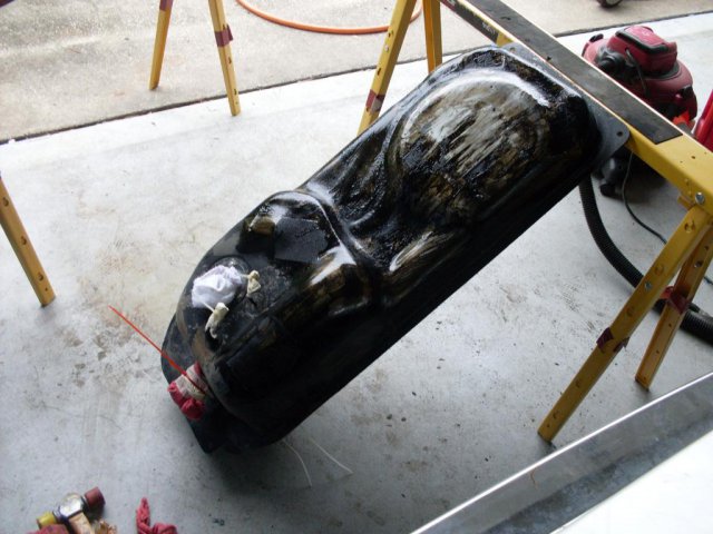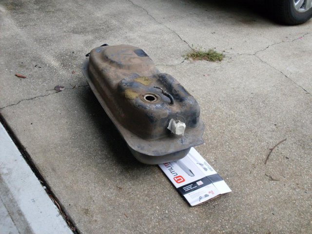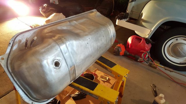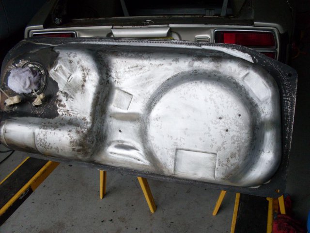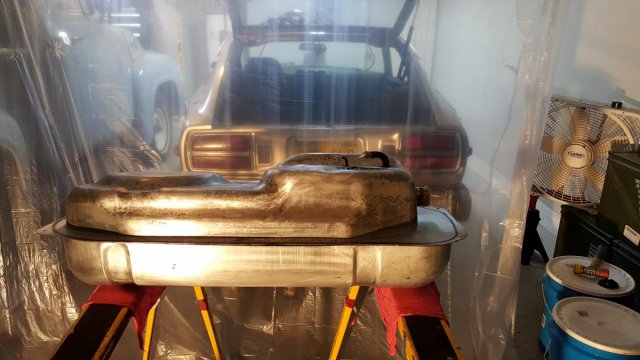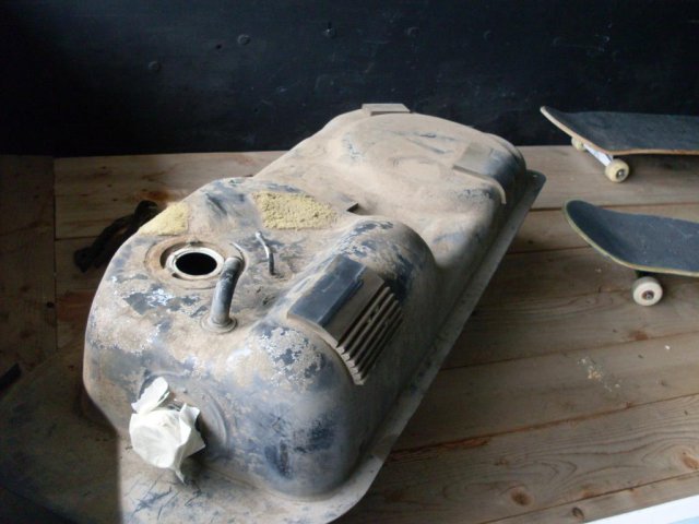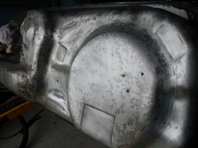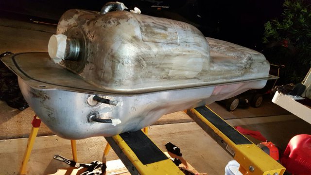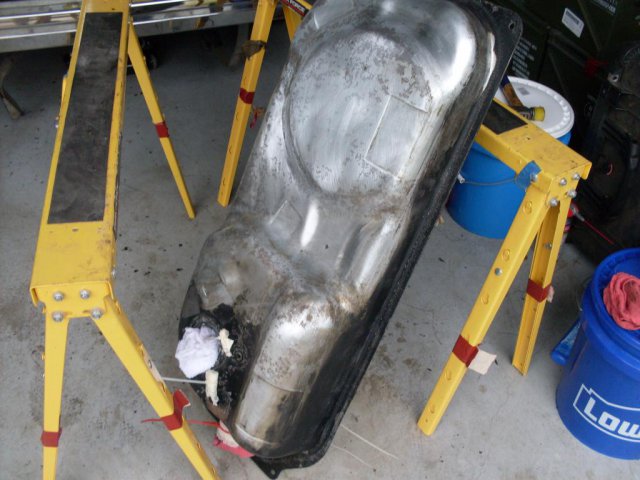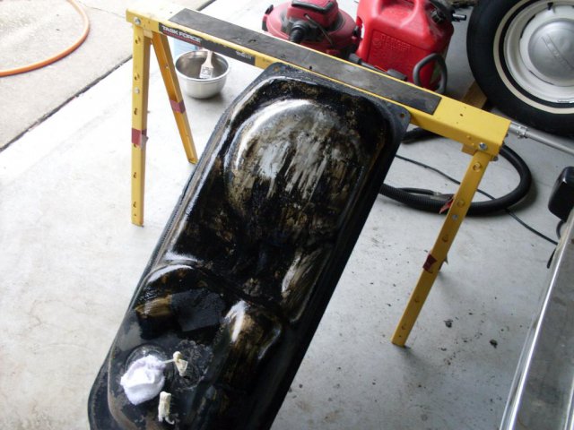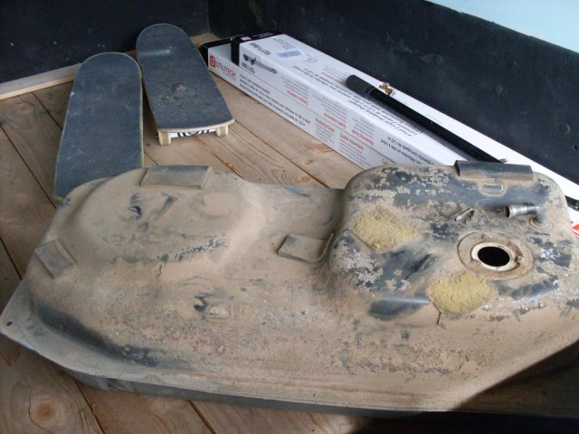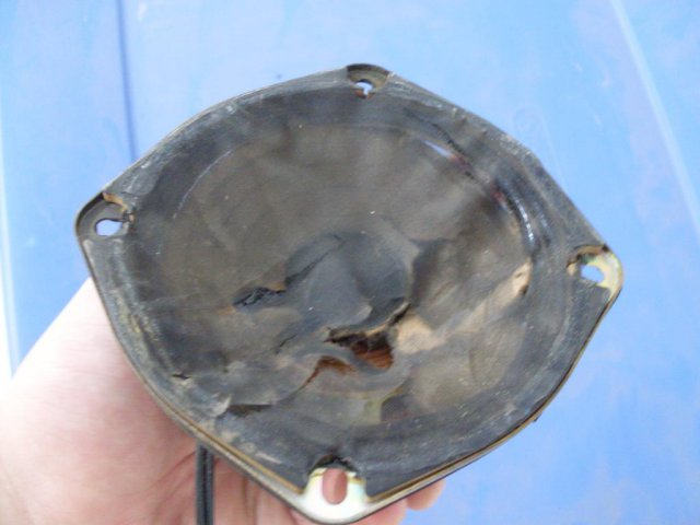 Thanks to my super awesome computer/cell phone set up, the photos are out of order...but I spent all of today...approx 12 hrs straight, cleaning out and sealing the interior of the gas tank and stripping and painting the exterior...I was afraid the POR gas tank kit I got wouldn't be enough, but it was perfect...the inside looks brand new, I only missed two hard to reach spots that I can see...more to come...Oh and I had one original Hitachi speaker...thought that was cool