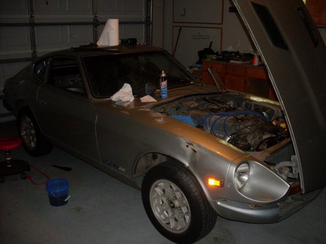 Hey, This build topic will be constantly changing as I learn and take input from you guys and other sources. So please feel free to let me know if you have found a better way or part for where I am heading. The goal of this build will be to take my Z from it's stock daily driver status and take it to a completely rebuilt machine and return as my daily and occasional autoxer. I am planning on starting the rebuild in the beginning of the new year as I am currently in the middle of moving across country. So for now, it's planning... Engine/Intake/Exhaust LS based - I would like to start with a 6.0l, either iron or aluminum. I am waiting to see what I can find in the local scrap yards. EFI - I want the fuel economy and space savings that come with it. Heads/Cam/Rotating Assembly - The LS6 components look like they will be enough for me for now. Still need to choose headers, exhaust will be based on what is best for the engine/performance Drive Train/Suspension/Brakes/Wheels T-56 6 Speed No clutch setup chosen yet Considering full T3 suspension/coilovers/disk brakes/rear end conversion/5 lug conversion - Looking at the Q45 for the diff and other parts - whatever ends up being the strongest is what I will go for. T3 Front and Rear Sway bars Polyurethane in applicable areas I have several rims that I like, but I will go with the largest tires in the rear I can find...I have a lot of reading to do on that topic... Electrics/Gauges/Interior Glowshift Tinted 7 color gauges - Speedo, Tach, Oil Temp, Oil Pressure, Water Temp Full rewire kit - American Autowire Highway 22 circuit kit NRG Steering Wheel NRG or Sparco Seats Power window and locks - Spal kits Dash repaired using the how to on the forums Body/Exterior Body completely taken down to metal, cleaned and repaired. Lizard Skin 2 coat system and Dynamat then new carpet 20 gal fuel cell All new weather stripping HID headlight conversion Fender flares Skinny front bumper and air dam 240 style rear bumper I will paint it myself...not sure what color just yet This is what I have so far...So like I said, please feel free to throw in your two cents...Also, I have two 1977 280Zs...My daily is a 4 speed and I bought the other as a parts car (it's a 5 speed). So, when this is all said and done, I will have a lot of the stock parts I won't be needing like the engines and drivetrain/suspension components...So when the time comes I will be looking to get those out to those that need or want them...Thanks and I am looking forward to getting started and hearing back from you all... Volition