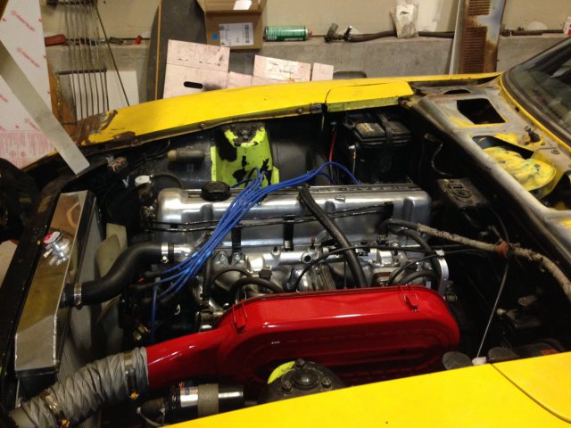 With the "new" engine in place and running there have been a few other issues that needed sorting out. On my first track day the fuel started boiling in the float bowls while running so it was time for a better heat shield between the headers and the carbs - yes these are ceramic coated headers and a better heat shield is still needed(not just a nice to have especially for track days). I built a new heat shield from scratch, it is hard to see in the pic but basically it looks like a park bench from the side without legs and covers the whole length but largely follows the style of the original with the addition of the flat bottom part. The place that is normally cut out is a bump in this version instead and the whole thing was covered with adhesive heat reflective/insulating sheet. This now keeps the carbs much cooler, so during driving there are zero issues. With this solved, I thought I was good to go but when driving on a hot day and letting the car sit for a while it starts perfectly but then it will die or become extremely sluggish. It died on the freeway which was a pretty scary experience. After looking around it looked like vapor lock so I searched around and found that insulating the fuel rail was a good way to fix this so I insulated and isolated the fuel rail. I first slit rubber fuel lines and put them over the original steel lines. I then drilled all of the mounting holes to .420 so I could put o-rings around the studs/bolts to prevent it from touching any metal. I then wrapped it with header wrap 2x. In retrospect the adhesive stuff that I used for the heat shield might have been better to not have exposed fiberglass around the lines, but either way after testing yesterday it looks like this problem is solved. It was attached with nylon washers on both sides so it is isolated from metal all around. Here it is completed and installed. After sitting for a while it is now a little harder to start, but once it starts it runs/idles great and doesn't die 1 mile down the road. I think what was happening is that the fuel would evaporate from the bowls first and then the fuel line would heat up and it would push fuel back to the bowls but leave the lines empty. So I am going to try isolating the fuel bowls from the heat even better, maybe add another layer to the heat shield or wrap the bowls. Either way it shouldn't leave me stranded in the middle of a freeway until it cools enough to drive. Yes I am still using the mechanical fuel pump and belt driven fan. -
