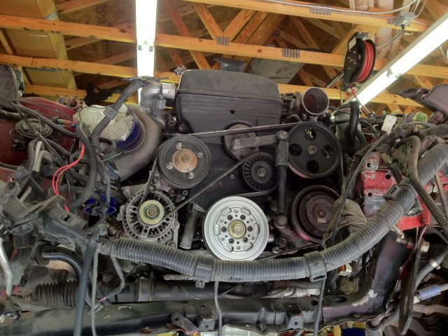 Armada rear differential with 2.9 gears in it will be headed my way next week. Likewise I now have tracking numbers for a VLSD 300ZX TT rear and axles. My stub axles haven't yet shipped nor has my subframe from Beta but I wasn't expecting them here yet so no big deal. Doing research I think I'm correct that the rear sump oil pan on the car now will work - awesome! I'm also eyeing the various cast and sheetmetal intakes all over eBay for the 2JZGTE, I have a modified stock one sitting too as well as a Q45 TB. I don't know what I'll do for an intercooler yet but that's down the road. I've sourced at least two places that will do custom wire harnesses so that's a relief although not cheap. A friend of mine may be a dealer for AEM and so could hopefully get me an ECU but I've yet to ask him. When the diffs arrive I'll be speaking to the shop that did Speeder and Z-Gads differential work. Shipping is going to kill me but I know these guys do good work. I've not yet ordered brakes but that's bubbling to the top of my list. I measured my tire height and the height on the Supra and both tires were nearly exactly the same so this car ought to feel an awful lot like my Supra did when driving, most excellent! For those considering this I'm seeing 2JZ to 350Z 6speed and T56 6speed adapters on eBay. I don't know how good those trans would be with this engine but they cost buckets less than the V160 and V161! One bummer - looking over the motor tonight I noticed that where a belt tensioner bolted to the engine on the driver's side the mounts are snapped off. These bosses are in a hunk of aluminum mounted on the block, I'm sure I can swap it. I may try to have it repaired when the engine is out. The motor ran after the accident so I know it's good but this is a bummer to find damage. The rest looks solid though thankfully and I may begin pulling exhaust and driveshaft from the Supra this weekend. When that's done I may swap the 240 onto the lift and begin pulling parts off of it. Brakes and stubs will be done first, diff may require a little welding, then the engine work although I might pull it early so it's not such a lump to push around Lots to sort out still!