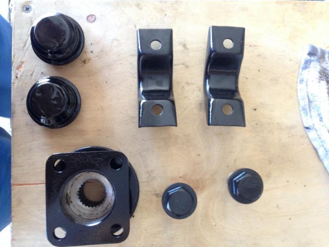 Got a special package yesterday- I'll be doing a write up on a step by step install since it arms like there really isn't one. Also I have gotten tired of looking at the rainbow of colors under the front cowl so I removed it cleaned it up and bedlinered it. While I'm under there the control arms are getting blasted and painted and new bushings as well, should make the car a much better place to be.