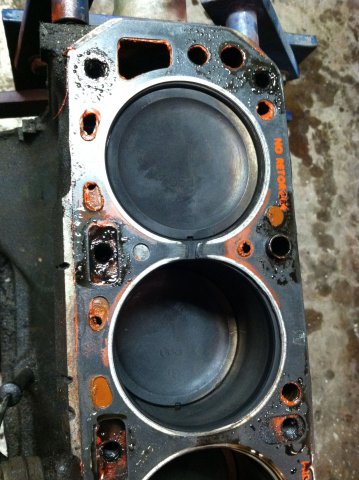 Ok while taking care of my son's cars. I finally got a chance to work on mine. Knew I had a blown head gasket between 5 and 6. This is on my L28ET with P90 head I had redone and ported a bit awhile back. In the mean time doing some swapping I got a fresh built lower end with balanced crank, .050 over pistons but they were flat top. So I went and looked up the calculations and with a P90 head compression will be about 8.6 which is ok, even for turbo. But when I was breaking down my engine I noticed that the valves extend beyond the plane of the head surface. With flat top pistons it would be smacking the pistons hard! Now I want to know if anybody has ran flat top pistons with a P90 head, I guess a 1 MM (.050) gasket may give it some clearance but I want to know as a fact if this works from somebody who has ran flat top pistons with a P90. I guess the alternative is to sell this beautiful block, and go ahead and redo my block. But thought this combination with less than 10 psi boost would be a good combination.