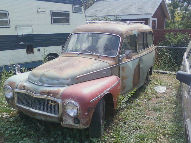 I was walking down the street because my DD broke down again for the second time in a few weeks. Anyways as I was walking I spotted an old volvo in a Alley, I have seen old volvos similar but nothing like this wagon. I was wondering if any old volvo buffs could identify it. It said b10 on the grill and 218 on the fender. Another thing I got a kick out of was the speedometer went up to 120. Also if it helps identify it the speedometer was one of the older style flat ones not a circle. Here is the pic I got of it.