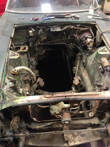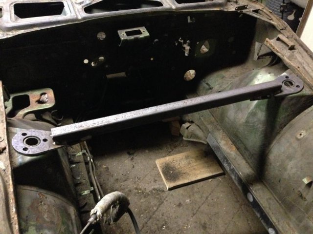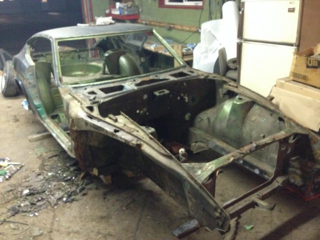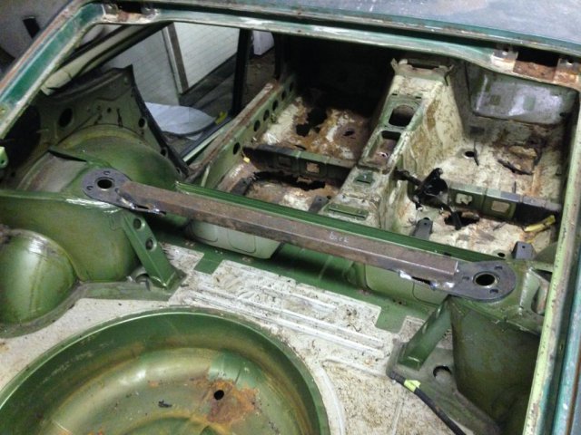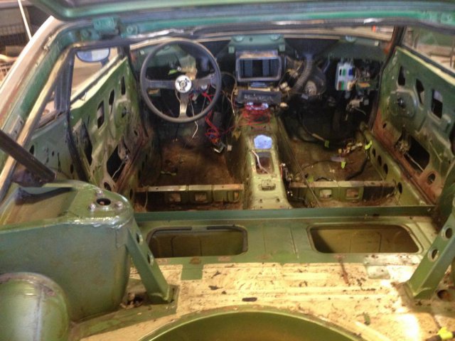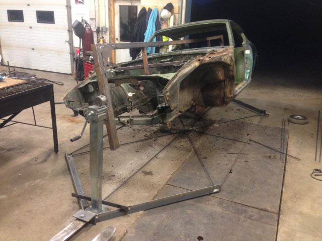 So midterms are happening, and the car isn't quite getting the attention I'd like to give it. I've managed to sneak out to the shop for a few hours now and again to finish clearing out the shell. That's what it is now, just an empty shell, I don't think there's anything more that can come off - now to start the actually fun part Here's what she looks like right now: I've been trying to find a good way to support the car while I replace the bottom and front frame rails to ensure it doesn't bend/warp the body. What I've come up with is whipping up 2 brackets that will be mounted to the tops of the front and rear strut towers, tying them together securely. The car will then be flipped upside-down, resting on these brackets. I'll make the frame rails up, and weld them in solid (besides to the floors, those are getting replaced too). After that I should be good to make the rotisserie, mounting it to the front and rear frames so I can flip the car around as needed and access all the hard to reach areas. Thoughts? Eric Thanks seattlejester. I hadn't thought of just putting on a quick primer for now, then taking it all off and repriming it before the final paint - good idea! Haha, that makes two of us.