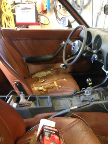 Yup, I'm planning on getting the factory diagram (there should be one floating around on the forum somewhere, just haven't looked for it yet) and double checking the whole harness. Job for later on I'm thinking - after bodywork Thanks NW240Z! If I end up giving up on the harness, I'll give you a shout xringx: I suspect shipping will be significant cost from Ohio across the border, but let me know how much you want for it. My original plan for the car was to just get it going and slowly improve it over the next few years, but it's turning into more of a ground-up build, so I'm seriously considering getting a bit bigger engine for her. What drivetrain are you putting in yours? Also, just a general question - what's everyone opinion on the brown-orange interior? I didn't really like it when I got the car, leaning toward black, but it's growing on me. Maybe I'll put it back in when I put the car back together and change it in a few years if I find a complete black set for sale, I dunno... Eric