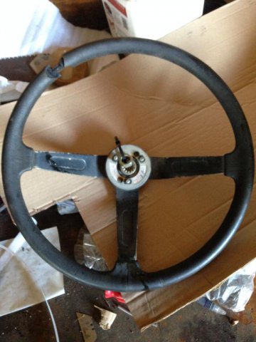 New update here: It's been a few weeks, things have been busy, but some progress has been made. This past weekend we sand/media blasted the under-body and engine bay. Discovered a few rusty areas that more closely resemble a certain holey cheese than a car, but nothing that's not fixable with a bit of patience. We are using an industrial grade sandblaster, and are a bit afraid it will damage the body panels if we hit them too hard. The plan is to chemically strip the rest of the paint, then hit the rusty areas with a finer sandblaster - better safe than sorry. We did try to strip the exterior paint with crushed walnut media, but it wasn't hard enough to eat through the primer, just the paint... so we scratched that idea. Picked up some epoxy primer from a bodyshop buddy of mine, I was assured this is the best stuff. The writing on the side seems to verify that haha. On a sidenote, I've got a few plans for the steering wheel. The stock one wasn't in the best condition, and I've always loved the look of wood steering wheels, so I think I'll attempt at a steering wheel build as well - I want it to be some blend of classic with a sporty vibe, I haven't seen anything out there quite how I would like it. Below is a first iteration CAD model, a 3 piece sandwich reusing the stock spokes and metal ring. Let me know what you think! I'll throw a few pics up of the sandbalsted car later so you guys can see what kind of rust issues I get to deal with, I could use a little sympathy haha. Eric