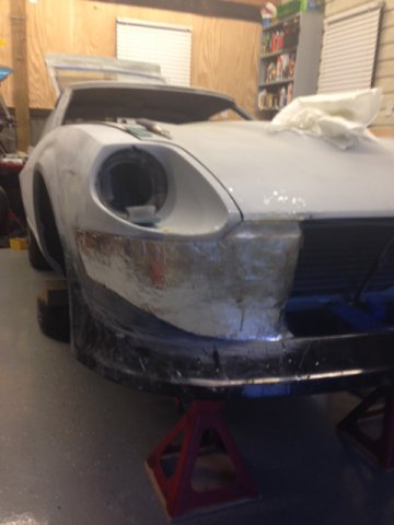 Thanks Fric Prepping air dam for fiberglass. Smoothing out the nose. Molding in fuel cell cap. Smoothing out roll pan. Getting s13 coilovers on all four corners.