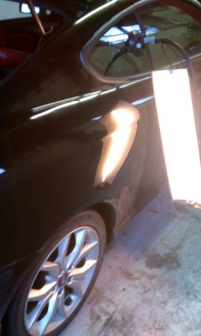 I havnt updated this in a while so here is another before and after.This is a Hyundai Tiburon.this was a small basketball sized dent in the quarter.This took 2 hours to repair.I accessed it all by removing the tail light. -