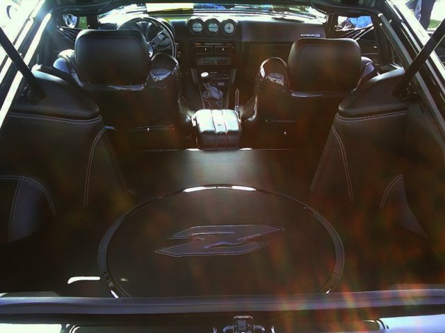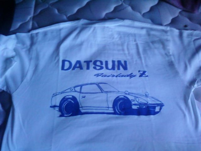 Update: Alright. was wrestling the whole mounting situation down and we finally got it. For some reason, everytime i drop the motor in, the mounts always gives me a problem. the problem maybe that the mounts are really old and have been bent out of shape, or we suspect slight frame damage on the passenger side. My dad being in auto body for decades, said the frame is fine. anyways, i got one side in, and took a 4in C clamp to match the mount and the insulator bolts. the tricky part is to line up the insulator insert with a mallet. this is the best way i could do it since i couldnt find anything on the side regarding, "how to install stubborn engine mounts". Engine in. Now i just need to figure out how to put on all the harnesses w/o making it look like a mess. The engine should be running by the end of september because i still need fluids($100........). I still have some wiring to do and some bolts to tighten. During all this, i will be taking apart the n/a motor that i had to learn more about it, and eventually rebuild the block. Who all Went to the JCCS show in Long beach? (Japanese Classic Car Show). There were about 30-40 Zcars there, all amazing. I saw this one Z that caught my eye. The rear interior was the jaw dropping and gave me some ideas. I also bought this amazing shirt. Look at this interior! That was all leather. I dont know who's car this is, but it was beautiful. When i was at the Junkyard(MillikenPIckaPart, off the 60. 3 z's there right now, msg me if you have questions) i found myself a skid plate. when i was at the car show, there was a section called "original and unrestored" and it had the skid plate. im not sure if thats what it is called. but its a plate of metal that covers between the cross member and the radiator support. so far, thats the only car that i have seen it on. I will paint it and take a pic for you guys today.