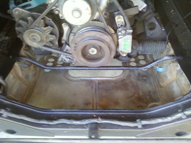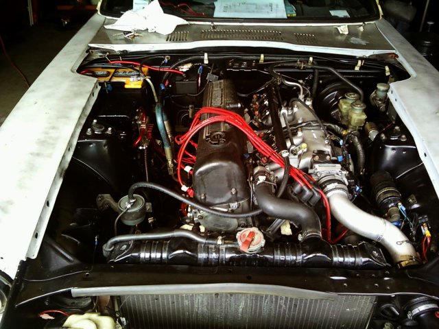 got some taylor wires on the engine. looks nice. took apart the n/a motor, threw away timing cover and oil pump. (timing cover broken at corner where it bolts, oil pump had a scarred surface making it leak.) Here is the plate/cover i was talking about. i just mocked it up. it needs some sanding and paint, which i will get to this week I was wondering what was the best way to put a cylinder head in storage. what kind of flat surface i should use? what holes do i cover, etc,etc.