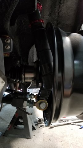 I finally got around to installing the upgraded WHP 39 spline stub axles with the zxt inner hubs. When I initially installed the axles they were too long (or the rlcas were too short) to get the coilovers to line back up in the strut towers. The picture above is how far I had to adjust them out to get everything to fit. Right now the axle is horizontal but the ride height needs to come down another 1" at least. That should help get the axles above horizontal at the hub and help with binding but I still think it'll be close. Can anyone chime in about your rlca measurements (i don't have the stock ones to measure) or see if the above looks about right? More pictures to get an idea of current camber and height: