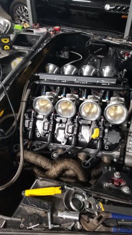 Alright, now that I have the car running: You absolutely need to have each throttle body adjustable. It will run like absolute dog sh*t unless they are synced, per bank and bank to bank. And the adjustments are very small, like 1/4 turn on an M4 bolt. I also went through the painstaking process of drilling and tapping every single runner and then tied them into a vacuum manifold to get a good MAP sensor reading. No Alpha-N needed, it tracks on the VE just like a normal manifold does but you need to ramp up the tps accel enrichment because it revs very, very quickly. Getting the crossover linkage sorted out was also a massive pain in the ass. If I did it again I might flip the TB's 90* and use an adjustable heim joint or something like this: https://www.jegs.com/i/JEGS/555/15795/10002/-1?gclid=EAIaIQobChMIx9e22LT55AIVFIrICh0mgAz7EAQYBSABEgKwhfD_BwE But, for the minimal amount of driving I'll realistically be doing, the current set up should be fine for now.