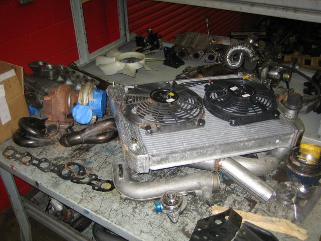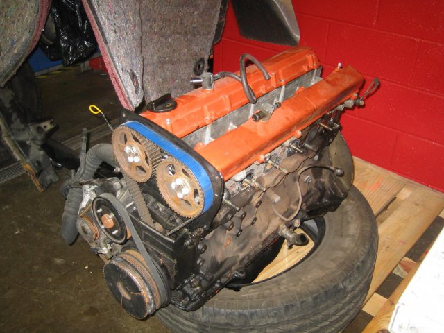 Well the engine arrived earlier than expected. I had pulled the old engine out yesterday, so the timing was perfect when I walked into the shop this morning and found my new RB20 waiting for me. I went to work pulling the acessories of of the new engine and next week will begin shifting all of the upgraded components over fromt he old engine. I should have everything stuffed back in there by this time next week, and then its off for tuning! Here are a few pictures of my progress so far.