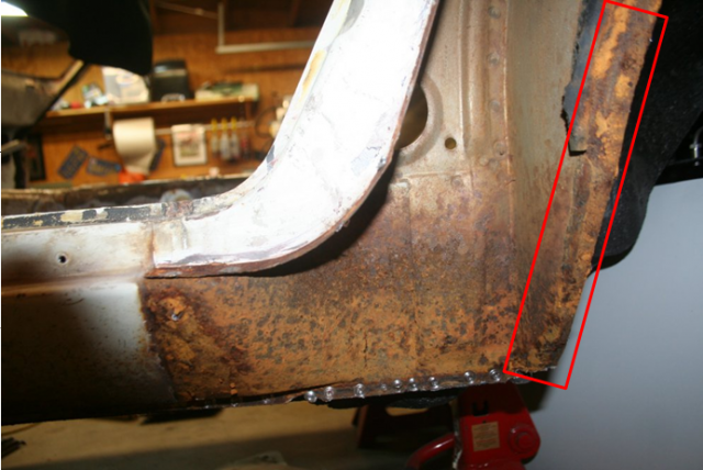 12. Interesting ideas. Are you talking about this section as the back part of the wheel well? I remember seeing Project Hugo a while back. I'm going to have to do some searching to find the exact pictures -- there's a thread of that build on numerous websites. It's going to be a daily driver but not when the weather is shitty. It will also see some track days as well. And I may enter it in some car shows, but it's not 100% original and not everything is perfect. I'm doing an L28 swap, aftermarket suspension, aftermarket bits and pieces, etc. I plan to keep this car for a while -- I'm not building it with the intention to sell. I may end up doing another zcar or other restoration that is more of a primary track/race car. I'm okay treating surface rust with a converter and encapsulating, just not heavy rust like in the picture. I gotta do something about that! On the fender/inner fender overlap circled in red in the picture I would think there's rust all the way around the length of that overlap.