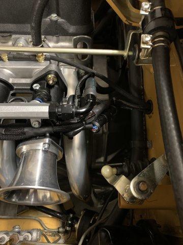 These injectors can be pointed any direction. I will leave enough pig tail for each to plug and unplug easily. Shouldn't be an issue. I am copying the datsun spirit wiring and injector wiring setup. I bought the kit from them. Swap wires? No room to change any of the wiring without a ton of effort. It's all shielded and should be perfectly fine though. I am using a hall effect home sensor on the cam. Not enough wiring length for the crank sensor wiring to be on the injector side.