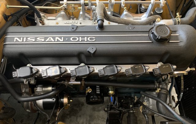 I got all my boots in, I wish there was an easy way to test the coils. But I know the spring is compressed on the spark plug, so I should be good. How has everyone run new ecu wiring into the engine bay? My early 240z has dealer AC. Which complicates things. Really I only have two holes open. The choke cable hole and the tunnel hole near the shifter. I would rather not cut any holes. If I leave the coil power wiring in the engine bay and do the o2 sensor and maybe the triggers for the coils through tunnel hole I am thinking I might have enough room for it with those two holes? It’s going to be tight, but I think I can do it all clean and nice. I will be using german braied loom for the whole project. No pulsed outputs. Plans Choke hole Injector wiring Cas wiring Air temp Coolant temp TPS Crank trigger wiring Tunnel hole Injector triggers Power and ground O2 sensor Fuel pump wiring is already in place. I also got in the euro kit from Hoke for my crank trigger. Which should work better on my series 1 dampener. I have to remove .08 from the backside to have it perfect. Then off to paint. Blue or black?!