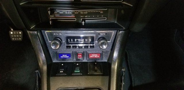 Update on my stereo setup: I wasn't totally satisfied with the underdash location and the quality of those speakers (front) so I trashed those and decided to buy the kick panel speaker pods (from Derek on the sister Classic Z Forum and Ebay) and install a pair of 5.25" Polk Audio coaxials in those pods. I also changed my generic amplifier to an excellent Kenwood unit but placed it similarly under the carpet over the transmission hump. I left the 4" Infinity Kappa coaxials in the stock 280Z position under the quarter windows and the 6x9 Infinity Kappas in the MSA rear deck enclosure acting only as woofers (crossovers and tweeters disconnected). I used soft enclosures around every single speaker. I kept the same Retrosound head unit that I had before but tweaked the faceplate a bit with a textured ABS overlay to look more like the original Datsun faceplate. The remote USB connections are in the glovebox and in the armrest compartment. In conclusion: stereo sounds amazing and it all might pass for OEM (maybe). Pics attached. -
