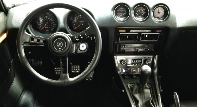 I haven't posted anything since last August but I was busy with many other life projects (like getting ready to retire!! ). I finally did a little playing with the Z and installed a Datsun Compe JDM steering wheel. It looks so much more fitting than the Momo Nero steering wheel I had on there before! It just looks proper. I also installed a "custom" fire extinguisher behind the passenger seat with an ABS plastic fabricated base hidden under the carpeting. Looks very clean and slick. Finally, I finished work on my Retrosound radio faceplate to make it look like the OEM unit by adding lettering above the knobs, -