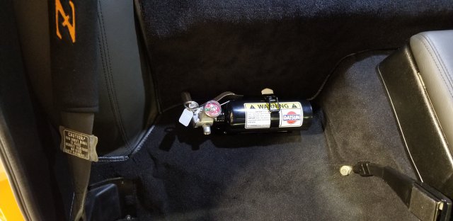 Nice to touch base with you once again buddy! The cool thing about the extinguisher is the base to which it attaches. I wasn't about to drill holes in the floors and wanted the extinguisher right behind the passenger seat where I could really reach it if necessary. I used a 4" x 12" piece of 3mm black ABS plastic and marked the 3 spots where the supplied extinguisher bracket would attach to. I placed 3 rivnuts in those spots on the ABS plate. I then covered the back of the ABS with heavy duty 3M double stick tape, lifted a bit of the carpet behind the passenger seat and stuck the base exactly where I wanted it. I replaced the carpet over the base and marked the positions of the rivnuts on the base with a pick through the carpet, placed the metal bracket that came with the extinguisher over the carpet covering the fabricated ABS plate and fixed it with 3 properly sized screws that would not extend past the rivnuts so as not to damage the car floor. I finally placed the extinguisher into it's bracket. The set up holds the extinguisher solidly in place and "no floors were drilled during the making of this film", 😉😂. -