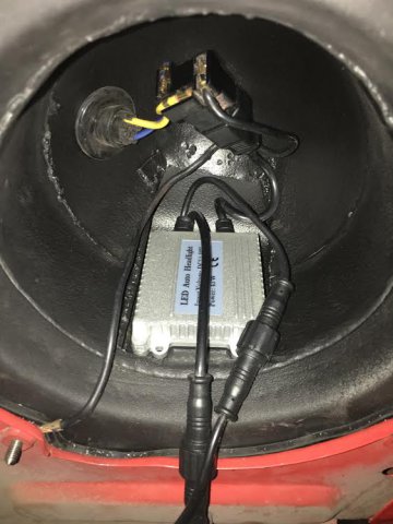dmoralesbello TRADER FEEDBACK 0 0 0 TOTAL RATING 0% Always Here Members 3 211 posts LocationKey Biscayne, FL, USA Report post Posted December 9, 2015 (edited) Here's an update on the headlight bucket extension mod that we started a while back but are only now in the process of installing. A 3"extension was welded in and a "pocket" for the LED ballast was incorporated into the back of the bucket. After finishing off with black anticorrosive paint a 0.5" hole was drilled on the engine side of each bucket, fitted with a rubber grommet, the OEM wires were fed through and the LED ballast placed in its pocket and held with 3M double stick trim tape. The Autopal headliamp with the LED light installed has the cooling fins protruding from the back plus the ballast but fits nicely into the modified extended bucket. The remaining installation is SOP. The intensity, quality and focus of the light emanating from the LED bulbs is excellent and the final look is very close to stock. Edited November 12, 2016 by dmoralesbello- 15 replies