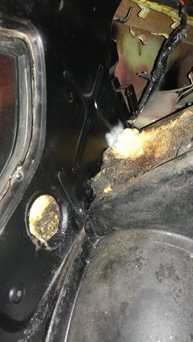 So the car was rear-ended at some point in its life. And the person who repaired it did not want to do it right (that's why my taillights are goofy if you were wondering). I also think they replaced the thin metal panel the interior plastics mount to on the passenger side with a new one, because there are weird welds and a copious amount of seam sealer around it. Another bright idea that they had was to fill the area between the thin metal panel that was replaced with a TON of insulating spray foam, and in doing so encased the part of the wiring harness that runs back to the taillights inside of the foam. I tried to yank on it first, didn't budge, couldn't even feel the tension on the other end of the harness. I sprayed acetone and brake cleaner on a chunk that I peeled of off the shock tower and it didn't dissolve it at all. One thing they tried to do was add connectors to the harness down where it goes into the foam by the rocker, what they failed to do was leave enough room to actually plug stuff back in. I cant get my hands in there enough to plug what I had back in. So splicing my 71' harness and connecting it to the 72' harness that's in the foam isn't an option, plus the rear of the harness is already pretty horrible and spliced on the original harness. So Hybridz, any suggestions on how to get the foam out of there/ get the new harness ran in there short of cutting out that panel? I plan to do it right eventually, but I'd really like to get it running by the end of summer and I don't want this to be a project that means I can't drive it before the Wisconsin winter sneaks up on me. I ended up swapping to my 71' dash and harness last night after work and for now I just have the rear section of harness running on the outside of the wheel well. -