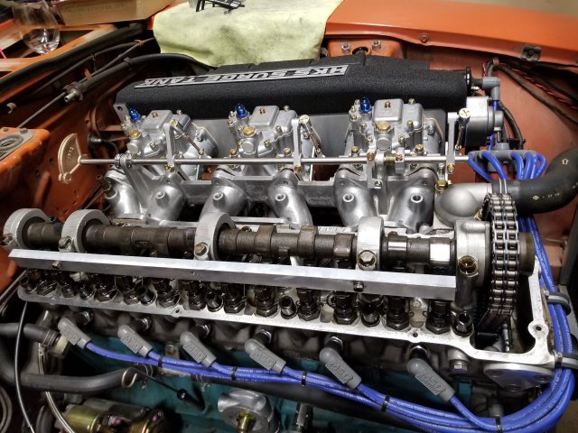 Thanks for the feedback Tony. Wish I had known your tips for the funky hole drilling on the later boxes before. Useful information if I ever go for another set of carbs or ITBs in the future. I had considered making a spacer plate at that time but just ended up drilling out either end of the carbs taking care to ensure everything was centered and level. I think my concern was that even with the Mikuni short runner the manifold inlet on the later tank was coming pretty close to the shock tower. In hindsight making a spacer plate would have been easier and less time consuming. As I was measuring I also think the previous owner of my car had already "clearanced" the bottom of the shock tower lightly above the frame rail back when the car was drawthrough turbo. Edit: Specifically what I had done was drill the holes enough to remove the threading where the trumpets used to mount via studs. The spacing at this point at the front of the manifold looked good with the bores for each carb aligned to the holes in the HKS v2 Surge Tank and the float tank pressurization port aligned as well. These dimensions looked ok and I bolted them up with stainless hex head hardware. I then had to drill out the rear mounting points for each carb to line up with the Mikuni manifold. I took care not to really hog out the holes. Just enough to be a hair under an interference fit with the manifold studs when slipping the carbs + surge tank on. I don't know what the ID of the Mikuni runners is but the OER 47 and the phenolic? spacers are much larger. I think Rebello is going to port everything between the head and the carbs- I'll need to confirm this. A question for you Tony if you read this and have input: How is venturi selection affected in a blowthrough setup? I currently have 36mm venturis on the OER 47s (the smallest they make for these carbs). I figured the smaller venturi would be good for off boost throttle response. I see NA cars running much larger venturis on these carbs, but we're cramming a lot more air in with the turbo. Got an update from Rebello earlier today- motor is moving along quicker than expected and they're already machining the block. We settled on the 8.5:1 compression ratio. BHK? dual row damper with a trigger wheel was selected in the event I decide to move off the 123 unit. Cam selection is still in the air.