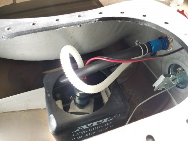 Been a busy week but finally getting back into this. Trimmed a spare valvecover to fit over the oil spray bar and buttoned up the rest of the fuel tank. Ended up running teflon AN washers on either side of each bulkhead fitting with a washer on the back to spread the load. Routed the return at the top of the tank which feeds back into the top of the black box. Hoping for no leaks and adequate return flow to maintain 3-4 PSI at the carbs with no boost. Still waiting for the AN fittings and stainless hardline to come in, but plenty to button up this weekend.
