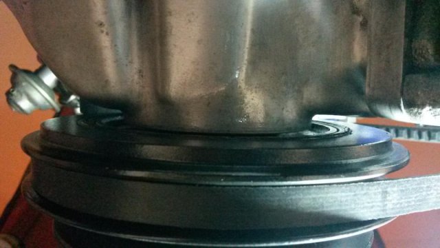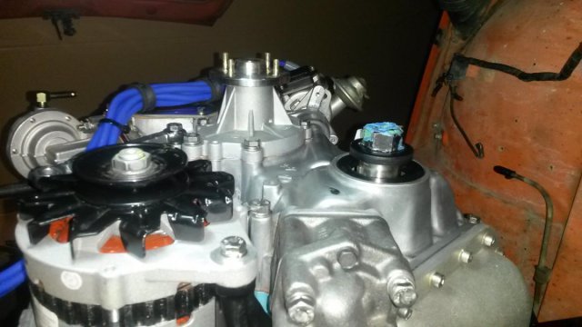 Thanks, just took a quick peek at the Tstat housing and bolt looks to be the correct length. Picture attached. Only running alternator belt, but it's on there finger tight (e.g. no tension) at the moment.