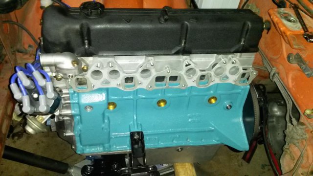 HOLY SH)(*&)*&!! I just got the engine to turn 1/2 turn then it stopped. Soaked cylinders with penetrant and valvetrain in penetrant then glopped in a quart of 10W40. Let it sit for 10mins then hit it with a torque wrench at 100ft-lb on the crank pulley. I guess it really did seize up hard over the last couple of weeks. Going to keep soaking it until I can rotate to TDC freely. Borescope revealed that crank counterweights and pan were clear of obstructions. I locked the flywheel with a prybar and bolt as my friend torqued the crank pulley bolt to ~100ft-lb. Thanks again to all who have commented on this thread. I've built motors that sat outside for months that still turned over freely by hand when installed. I guess that's what 43 years will do. Probably need a rebuild eventually but until then this motor is getting run hard. Not out of the woods yet but getting close. Will update shortly.