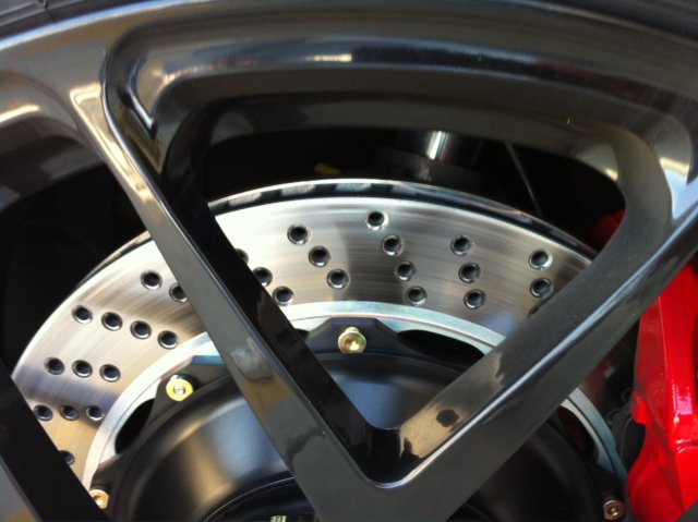 3. Hey guys! Just wanted to follow up after a track day test we did at Sebring this last weekend. We treated the rotors and pads on a Porsche GT3 and installed them the day before the event. Sebring is one of the hardest tracks on brakes in the country AND most of you may know that Porsches are known for their amazing brakes, which means they tend to be very hard on them, as well. It was a 90 degree day at the track, low humidity (thank God) and there were 160 cars entered at this Porsche Club event. The owner of this GT3 is a certified instructor and he ran 6 sessions with a couple of them back-to-back, which is 3 hours of abuse at Sebring. He commented on how he never had any fade, actually had more brakes than tire and we even had other drivers come over and ask if he had just put the pads and rotors on, as they looked new. Typically, micro stress fractures will appear at the end of the first track day on Porsche rotors. As you will see, there isn't even a hint of a single one, no brake dust and brakes do indeed look new. With the Porsche guys who run track days all the time, they actually end up tossing the brake rotors once the stress cracks go from hole to hole and/or the cracks hit the outer edge before they actually wear it out. The last pic is of brakes on a 2011 Porsche GT3RS that I rode in that the owner bought on New Years Day this year. Glad to see some actually use their cars for what they were built for. He will be getting treated brake parts this next time around. We are going to treat a set on a new Corvette Z06 this week for a 2 day track event at Sebring in 2 weeks, as well as a LS1 powered ex-Penske Panoz race car. Check it out.