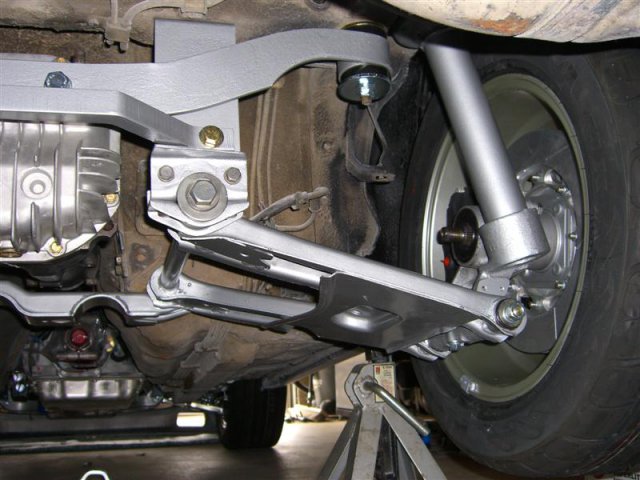 Well, I finally got the rear suspension in, although I'm still waiting for the CV adapters from Ross, then I can put the axles & rear sway bar in place. This is the first time it has sat on the ground with the new stuff on it. Of course, with out the glass, interior, fuel, hood and all the other stuff, it is sitting a little high, so it looks kinda 4x4 to me. Anyway, I'm getting closer and now just need to keep on it. Any feedback is appreciated. I'm sure there will be plenty of fine tuning and even changes down the road, but I just want to get the thing driving and I'll play with stuff later.